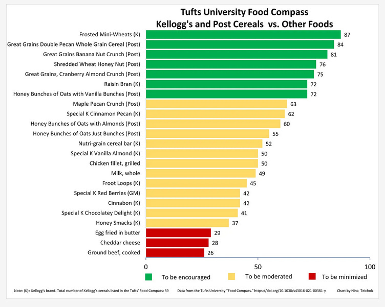 As luck would have it, these are the very types of foods that rank the highest in the latest US dietary guidelines, issued by Tufts University and called the “Food Compass”. It’s probably a coincidence that the companies that produce these foods also provide funding to Tufts. “Follow the science” is now synonymous with “follow the money”.
